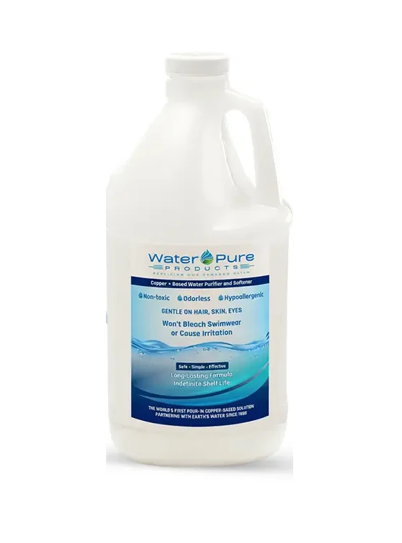 The Original Water Pure, first created and patented in 1998 under the name Spa Natural, is the world’s first simple pour-in, copper-based water purifier and softener. Designed with nature in mind, it offers an indefinite shelf life, safe and gentle use that won’t damage swimwear, hair, skin, or eyes, and long-lasting applications that make it both effective and economical. Upgraded and improved over time, Water Pure continues to stand as a trusted legacy in clean, naturally softened water.